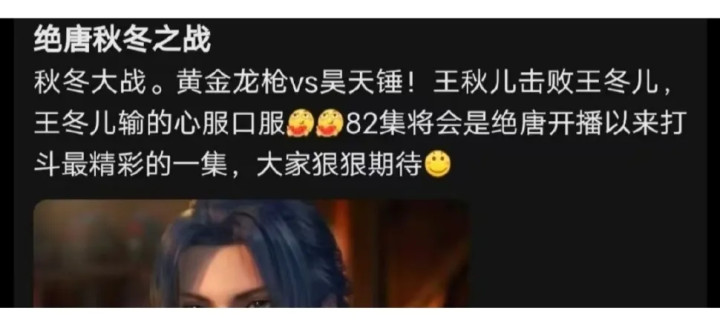《绝世唐门》动画更新到了80集,制作组对王秋儿是确凿心爱。为她安排了十几分钟的打戏,一次性的魂导器还有新造型。殊效拉满音乐到位欧洲杯体育,几乎远超女主王冬儿的待遇。跟着80集的播出,辘集上又出现了后续的剧情爆料,也即是许多东说念主期待的“秋冬大战”。