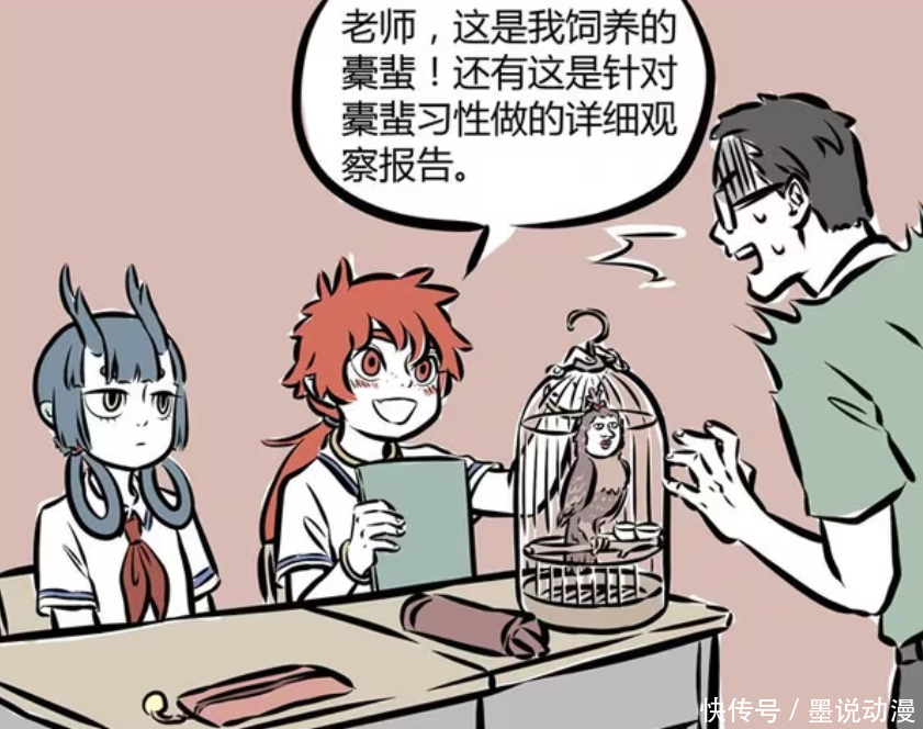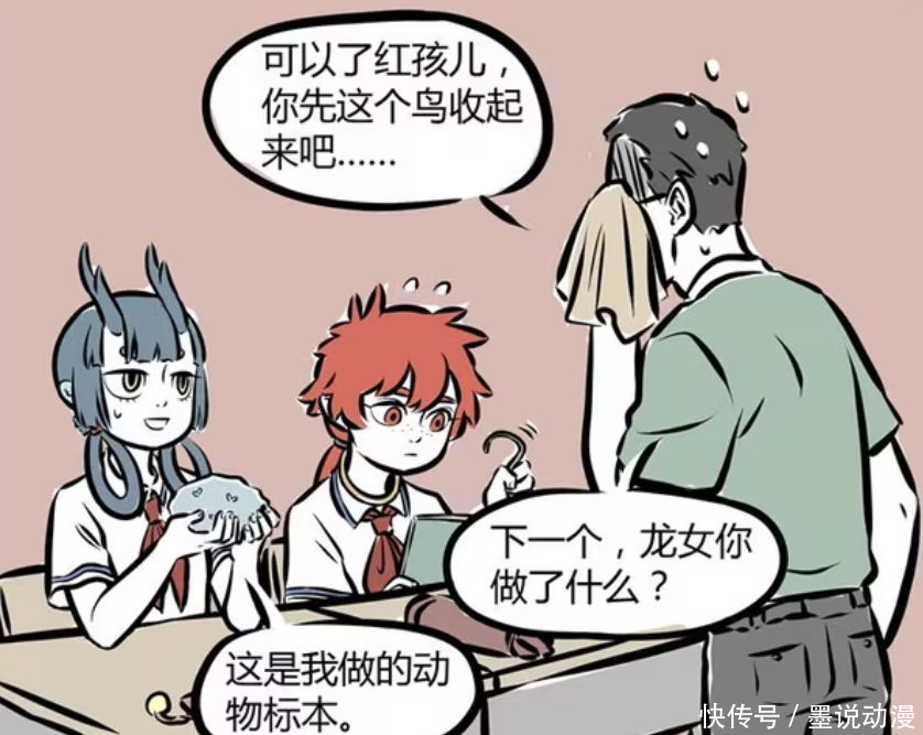 因为没见过这种东谈主面鸟,是以如故会窄小。此时敦厚让红孩儿将鸟收起来,接下来即是要看龙女的功课。红孩儿似乎有点失望,不外好赖是完成了功课。至于龙女,一看就没好好不雅察,而况带来的动物标本,亦然有点离谱。