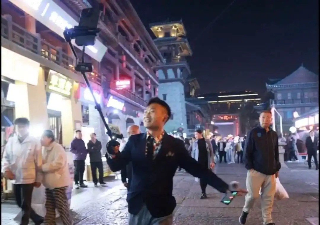 记者散步在曹魏古城的夜色里,满眼都是身着古韵汉服款款而行、衣袂飘飘间尽显三国风味的旅客。还有采集达东说念主架起配置直播开唱,引来围不雅旅客阵阵喝彩与掌声。