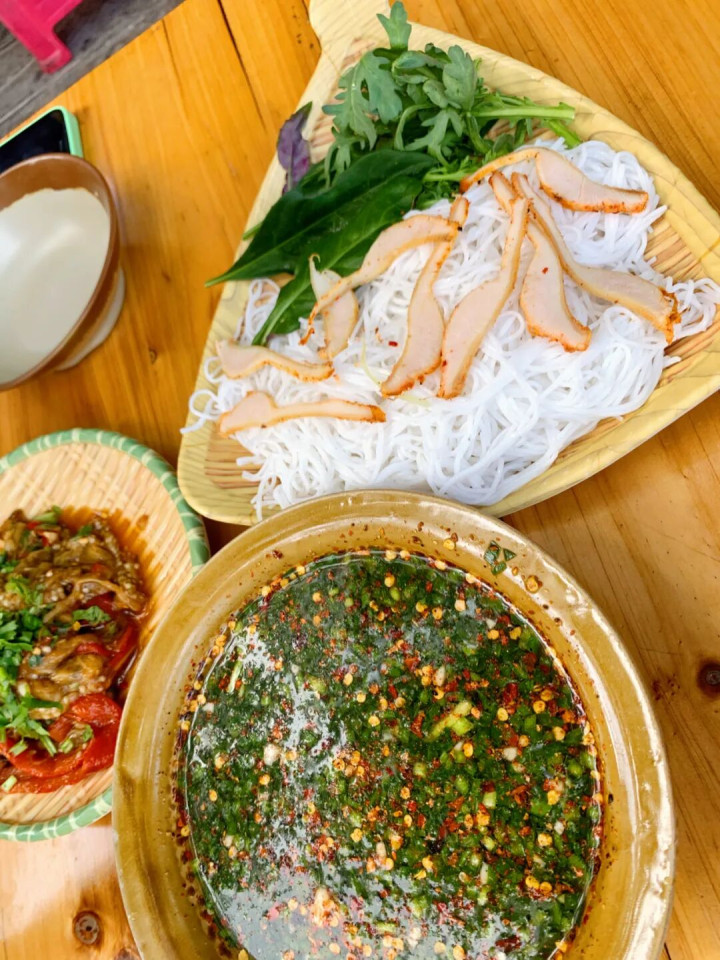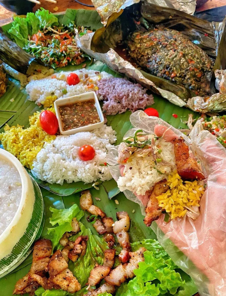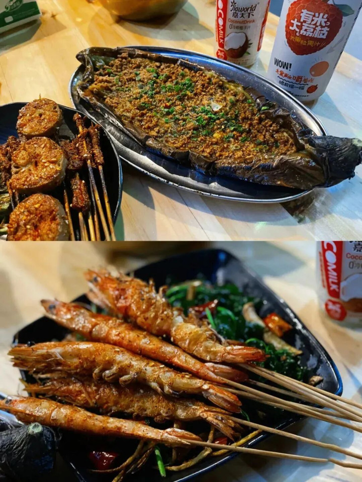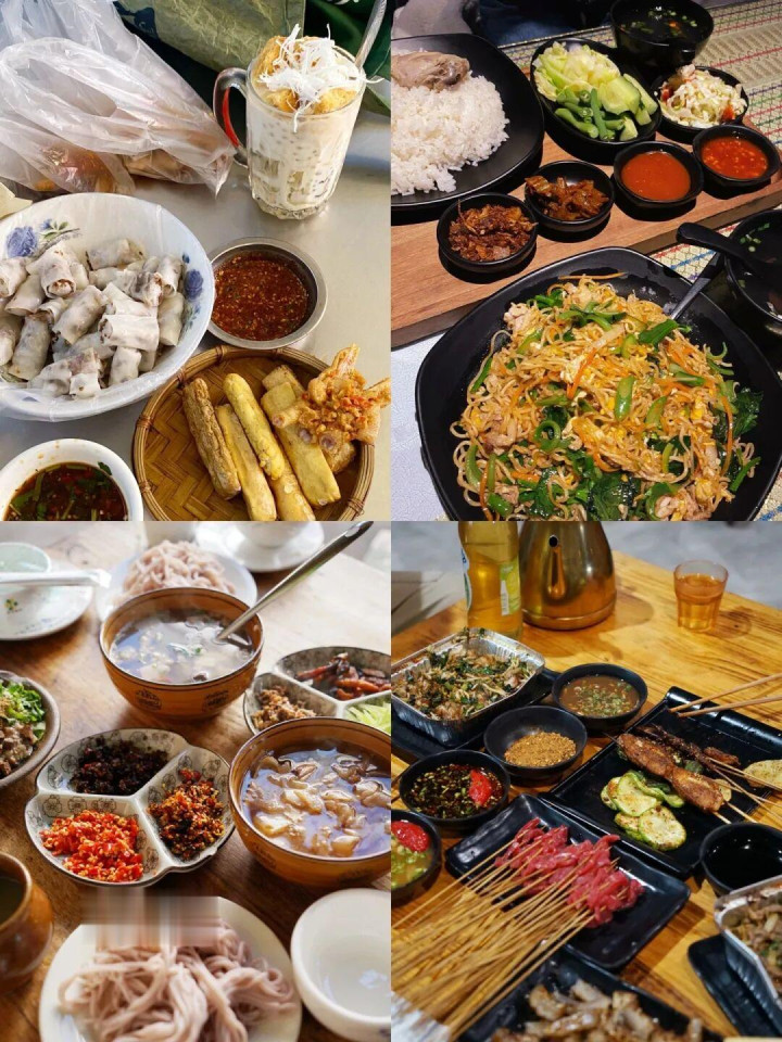 用芭蕉叶当碗,盛着舂鸡脚、烤鱼、鬼鸡等特点菜,色香味俱全。至于夜晚,属于三街六市的烧烤摊。罗非鱼外焦里嫩,肚凉Q弹爽滑,烤猪皮香脆厚味,包浆豆腐一口爆浆……种类多到头昏目眩,配上特制的蘸水,香得你连舌头都思吞下去。