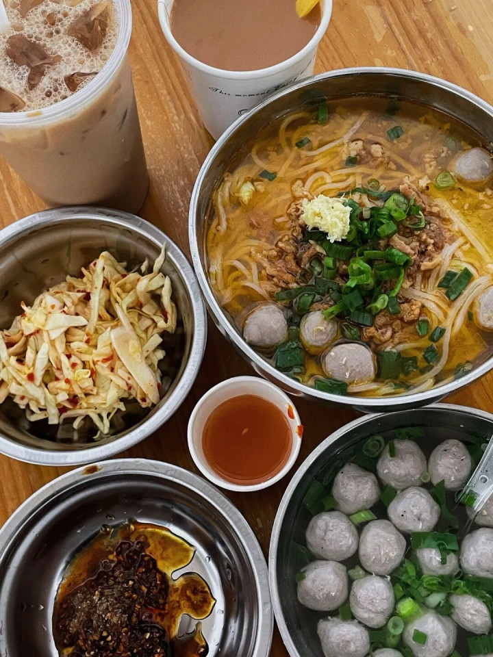 ●牛肉圆子 & 饵丝:手打的牛肉圆子紧实Q弹,咬一口仿佛有牛在舌尖舞蹈;配上炖得软烂入味的牛腩饵丝,再佐以十几种自助佐料,香葱、香菜、辣椒、花生碎……十几块钱就能吃得舒心淋漓,连汤都思喝光。