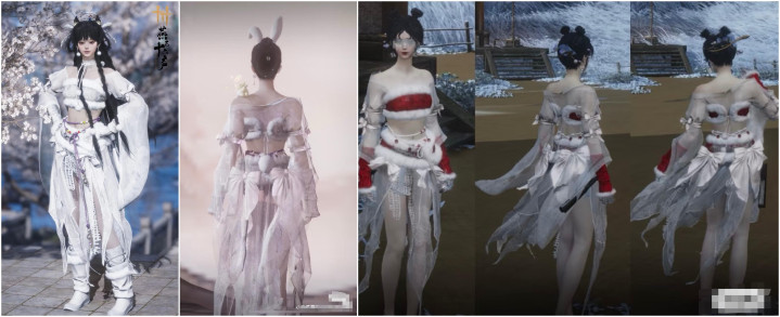 左一为《燕云十六声》官方公布的时装图,其余为玩家在集聚平台发布的游戏内截图。