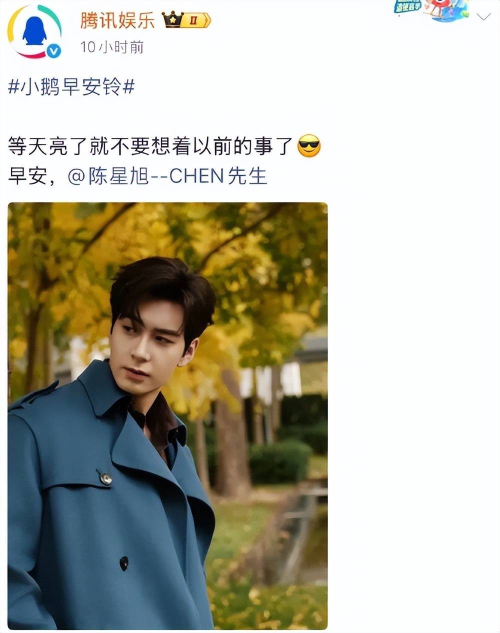 但好在,要道技艺鹅厂发表博文“等天亮了就不要再想以前的事了”,还艾特了陈星旭,同期“鹅厂力挺陈星旭”的词条也登上了热搜。