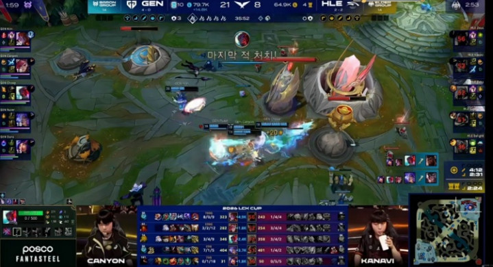GEN:上单Kiin、打野Canyon、中单Chovy、下路Ruler、补助Duro