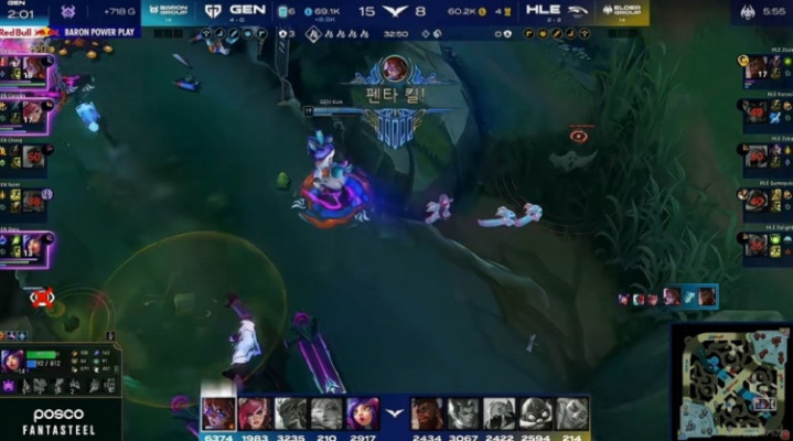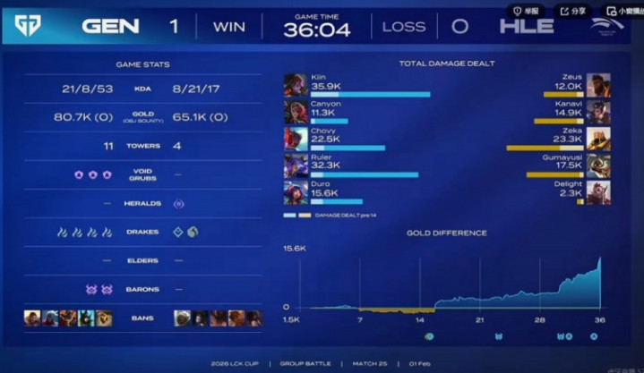 首局比赛天然Kanavi赵信联贯前期两波碰到战立功2-0开局,然则Zeus选出上单奎桑提被Kiin阿萝拉对线压得死死!上单对位经济差抑遏扩大!GEN中期找到契机,前卫团好意思满拉扯团灭HLE一波打回前期统统瑕疵!随后Chovy永恩联贯被捏,然则GEN顺便拿下大龙!Duro妮蔻几次大招齐射中HLE多东说念主,Ruler芸阿娜和Kiin阿萝拉轮着收割啊!