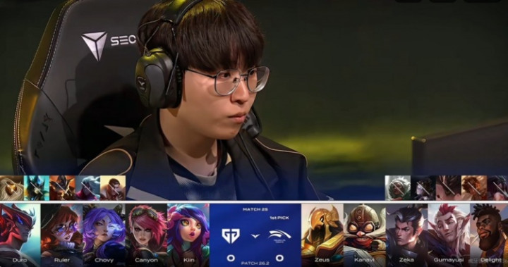 HLE:上单Zeus、打野Kanavi、中单Zeka、下路Gumayusi、补助Delight