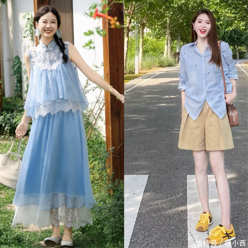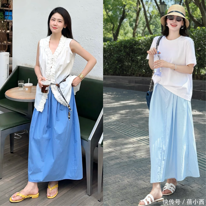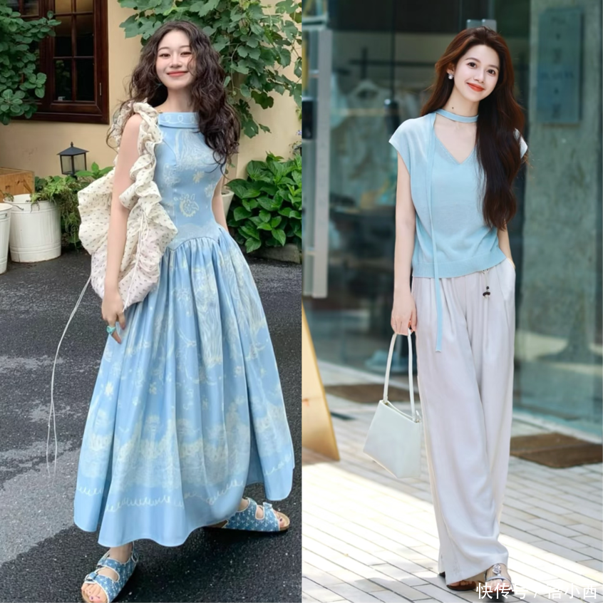 蓝色十分合乎搭配白色,这种澄澈的配色能够让所有搭配充满氛围感,凉爽大方,而况所有造型齐是低饱胀度色,黄黑皮也能附近,谁穿谁好意思!