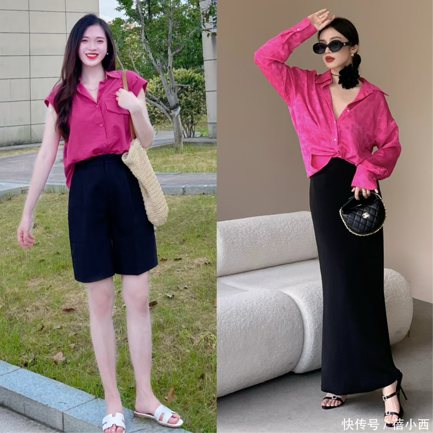 玫红色的高饱胀度和好意思丽度,对30+、40+女性来说的确是“雷区”,这种神采自带热烈的视觉冲击,年青时穿能靠胶原卵白撑起“活力感”,但到了中年,肤色不免带点黄气,玫红色会与之变成热烈对比,让肤色显得更蜡黄,以致透出低价感。