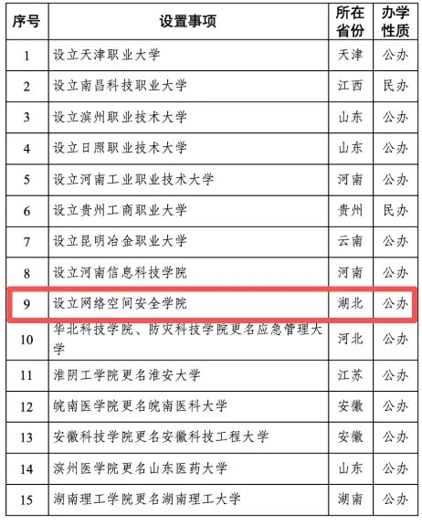 经教训部党组会议审议,拟答应竖立辘集空间安全学院在内的15所学校。