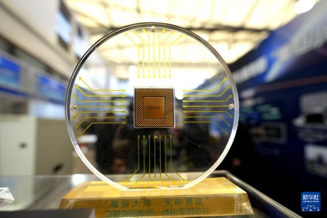 3月12日在2026首届上海交易航天大会暨博览会上拍摄的一款卫星测控数传一体化专用芯片。 3月12日,以“把执交易航天机遇、共赢天际经济异日”为主题的2026首届上海交易航天大会暨博览会在上海新海外博览中心开幕,展会将不息至3月14日。 新华社记者 张建松 摄